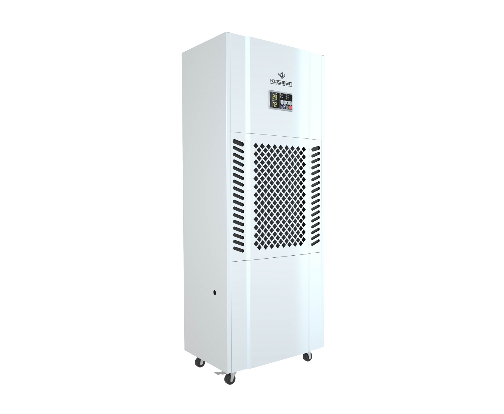 - Das Design des industriellen Luftentfeuchters Kosmen KM-180S mit der weißen Hauptfarbe ist sowohl luxuriös als auch modern.